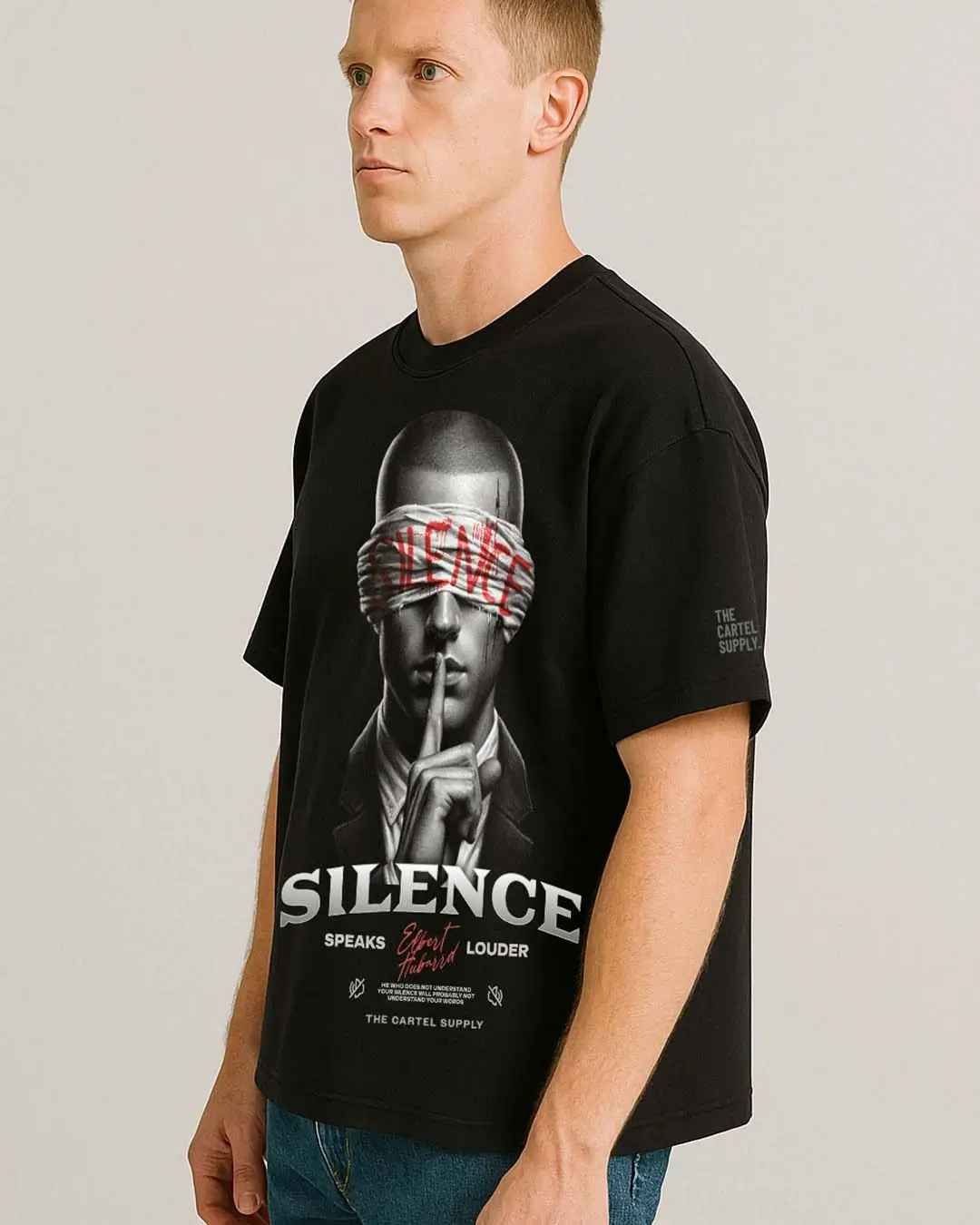 Mute Rebellion is a 300g/m² Super Heavyweight American Apparel® T-Shirt. Designed with an oversized fit, these tees are destined to be wardrobe staples. Made from 80% U.S. ring spun cotton and 20% polyester, they effortlessly transition from day to night.